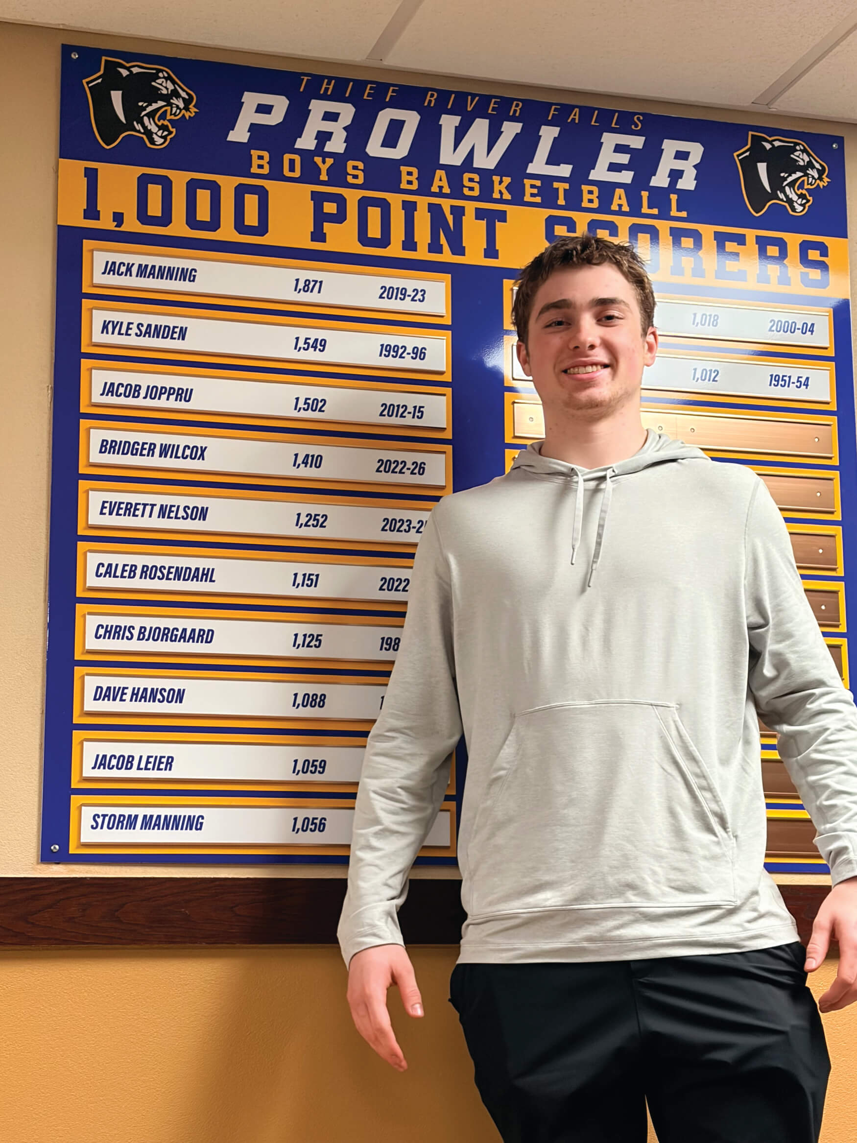 Wilcox joined the 1,000-point club during the Prowlers’ 65-44 loss at Red Lake County on Jan. 8. He finished his career with 1,410 points, which ranks fourth in program history.